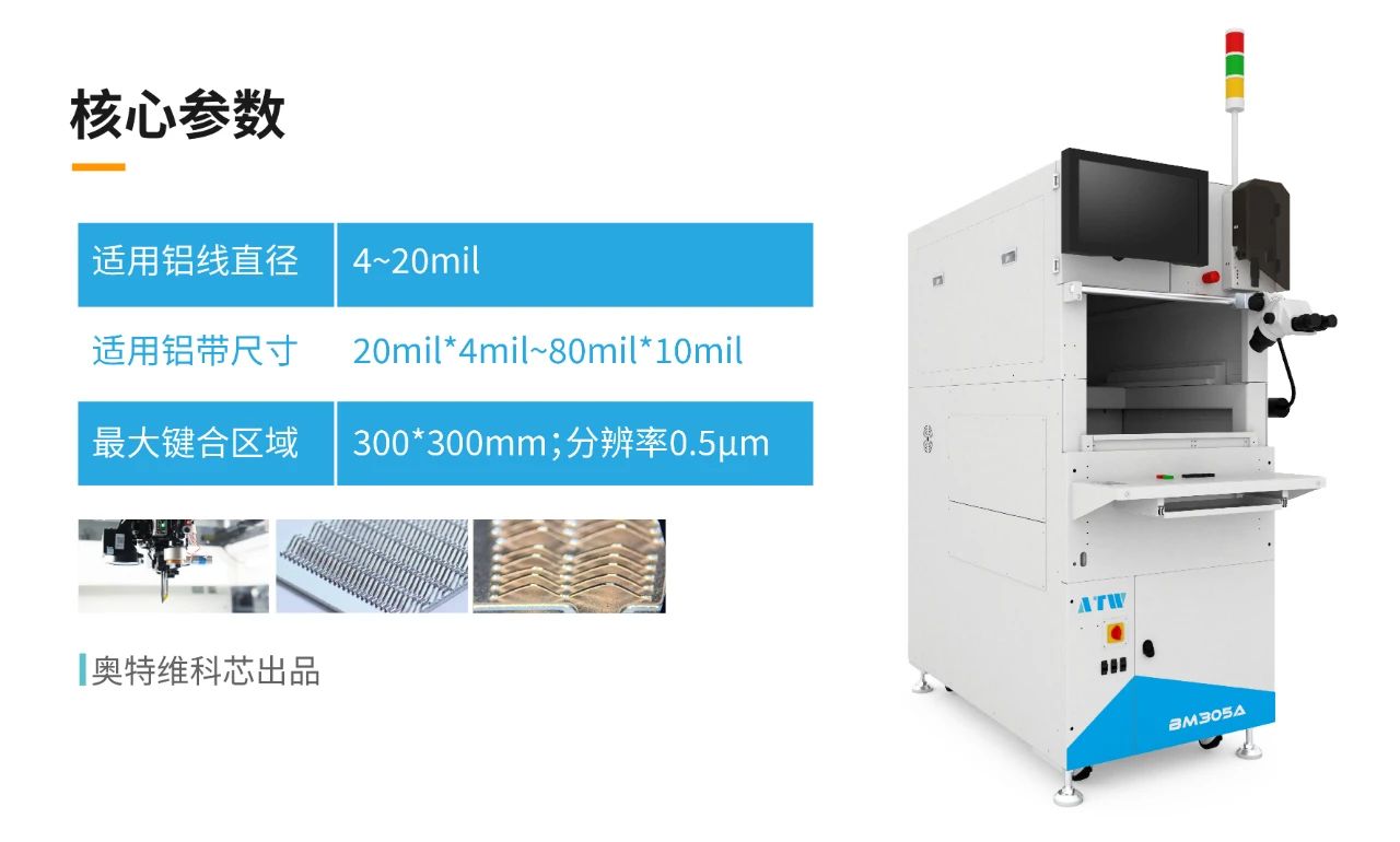 奧特維近年來在半導體領域聚焦于封測環節,潛心研發,陸續推出了鋁線鍵合機、裝片機、AOI檢測設備、晶圓劃片機等多款設備。其中半導體鍵合設備已獲得數家知名企業的小批量訂單,取得客戶的認可。